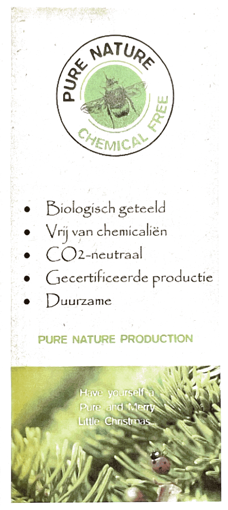 Pure Nature Nordmann kerstbomen worden gekweekt zonder gebruik te maken van milieugevaarlijke pesticiden en kunstmest.